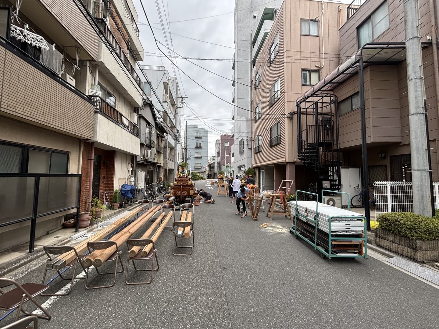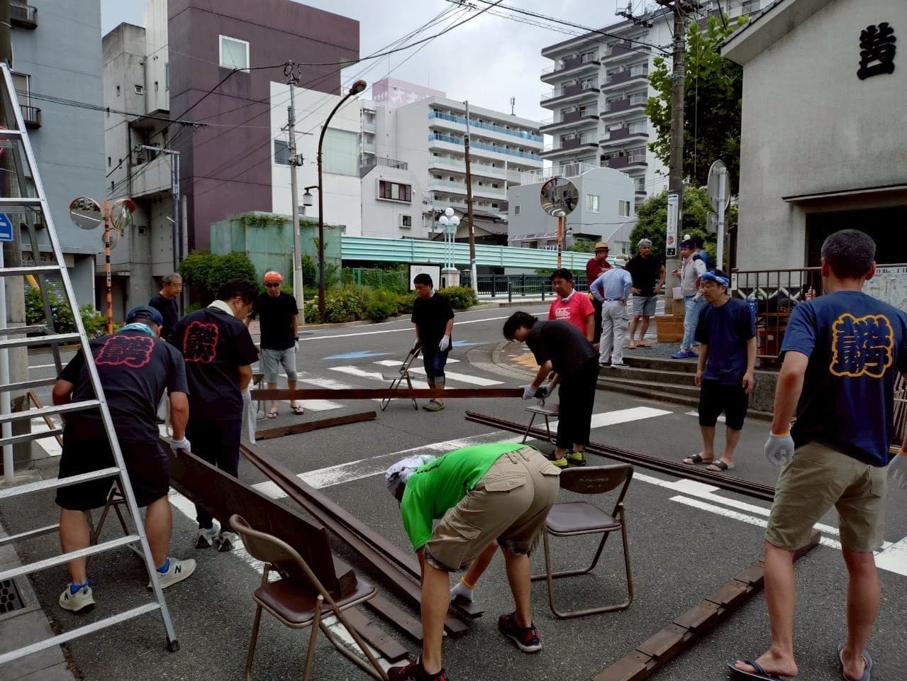 ③8月14日(木)大人神輿組立 設営完了 集合時間午前8時