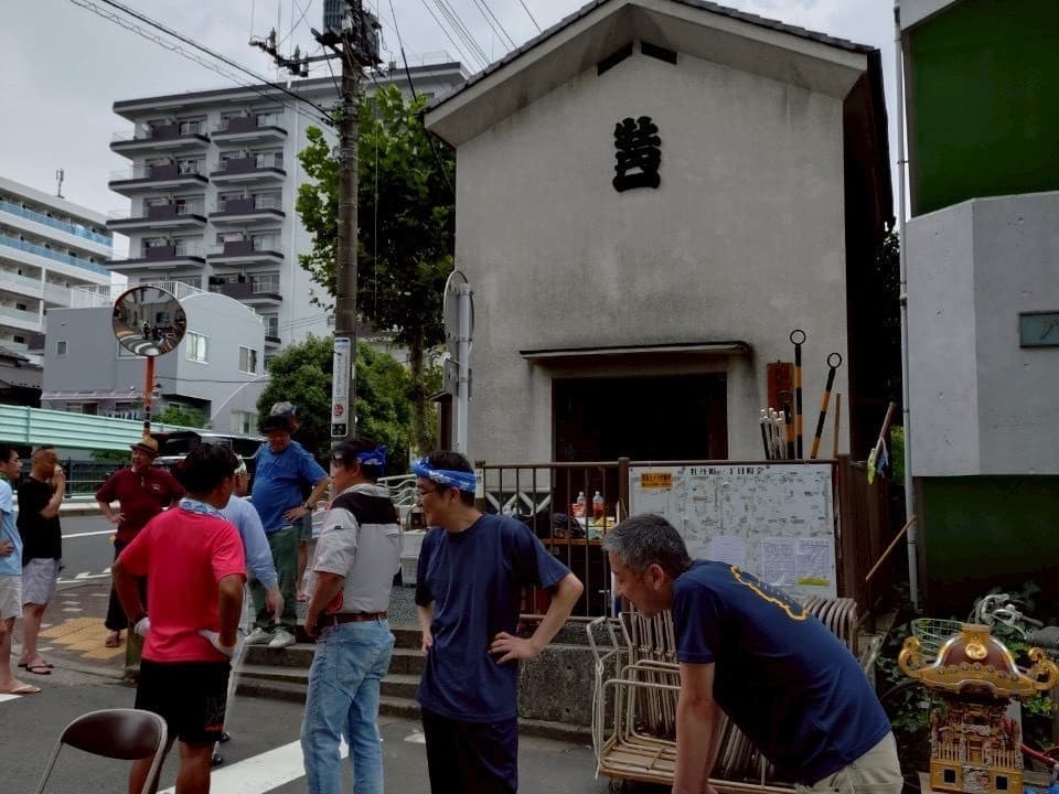 ③8月14日(木)大人神輿組立 設営完了 集合時間午前8時